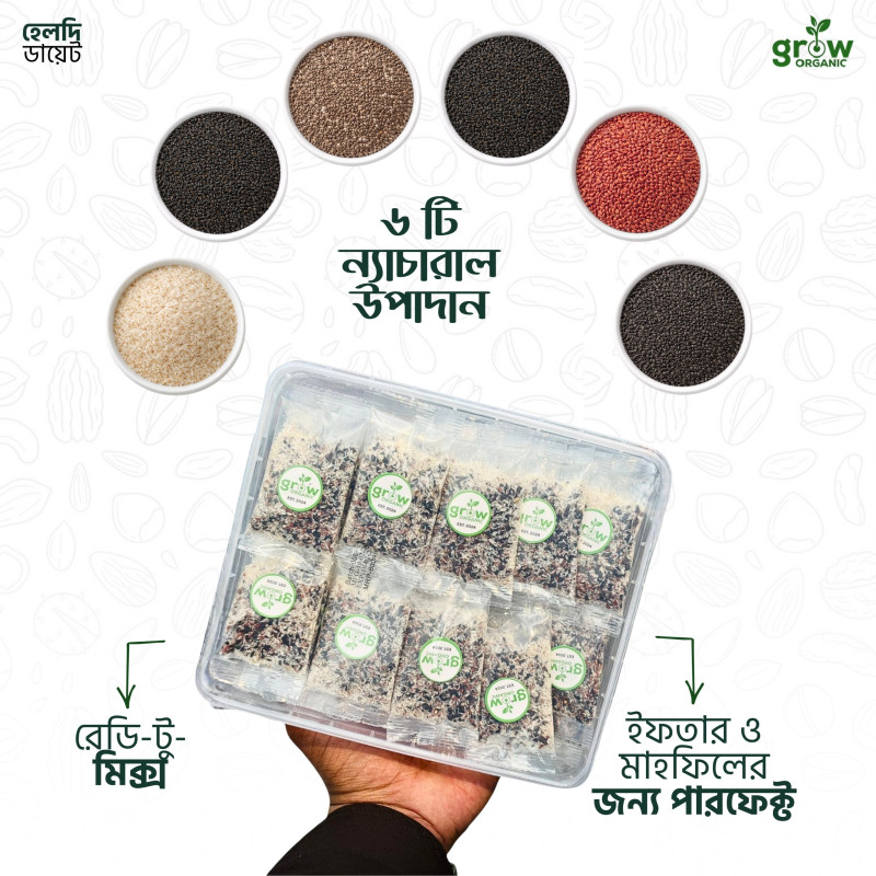 ইসবগুল, দেশি চিয়া সিড, তুলসি বীজ, তোকমা দানা সহ ৬টি ন্যাচারাল উপাদানের মিশ্রণে তৈরি।
