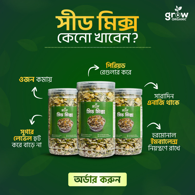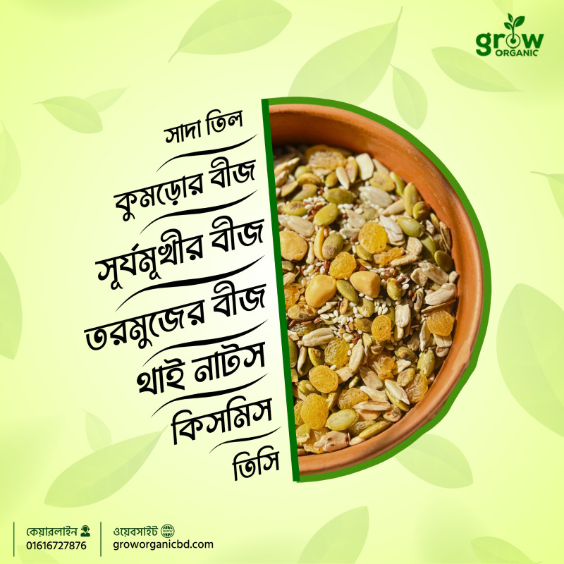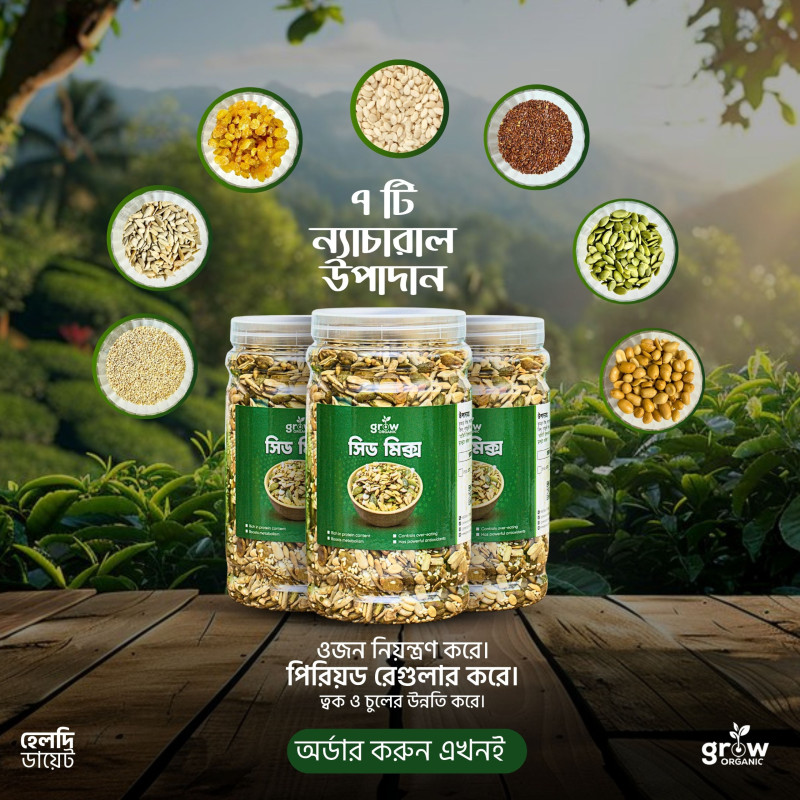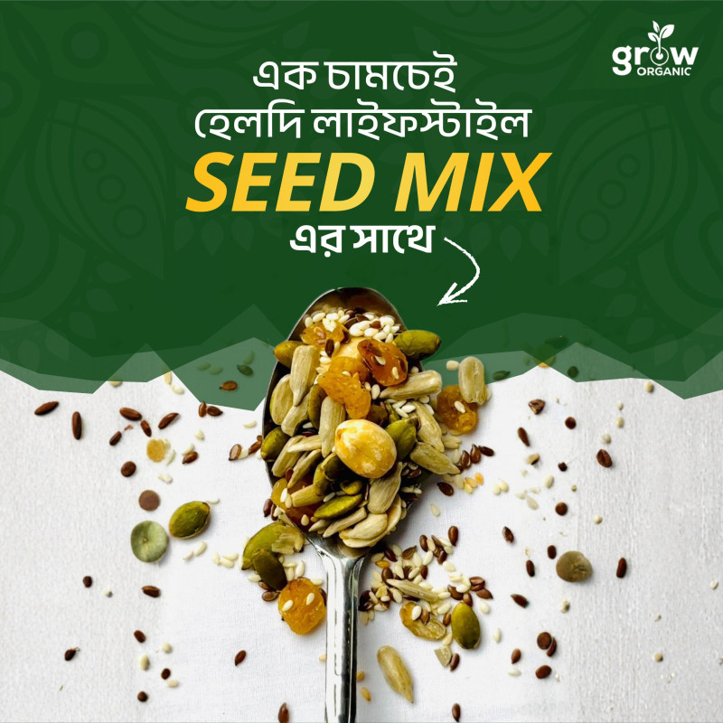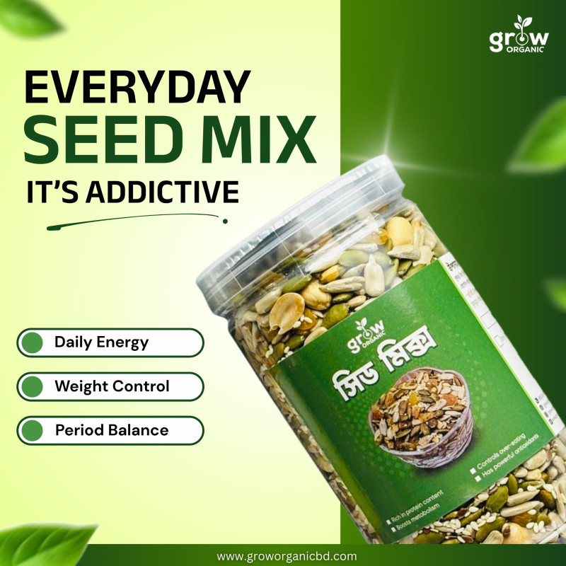 Grow Organic-এর Everyday Seed Mix হলো এমন একটি স্বাস্থ্যকর সুপারফুড মিক্স, যা ব্যস্ত জীবনে পুষ্টির ঘাটতি পূরণ করে স্বাভাবিক উপায়ে।ওজন নিয়ন্ত্রণ ,চুল, ত্বক, এনার্জি তো আছেই—সাথে পাচ্ছেন হার্টের সুরক্ষা, ডায়াবেটিস নিয়ন্ত্রণ ও হজম শক্তি বৃদ্ধির মত গুরুত্বপূর্ণ উপকারিতা।